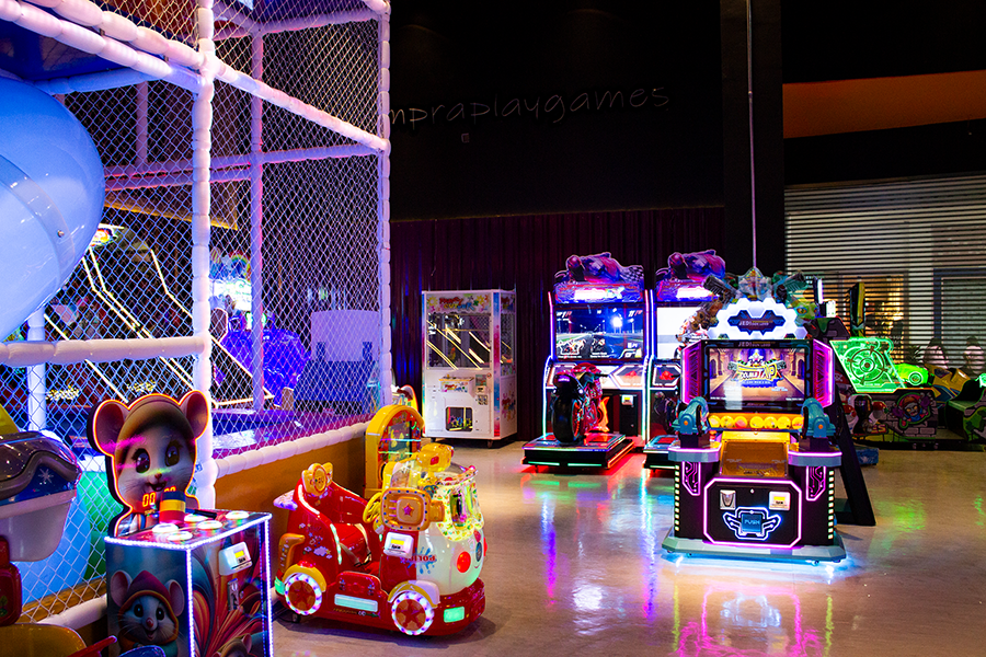 A Play Games conta com jogos eletrônicos simuladores, fliperamas e de realidade virtual, gruas de urso de pelúcia e brinquedão com projeção interativa.